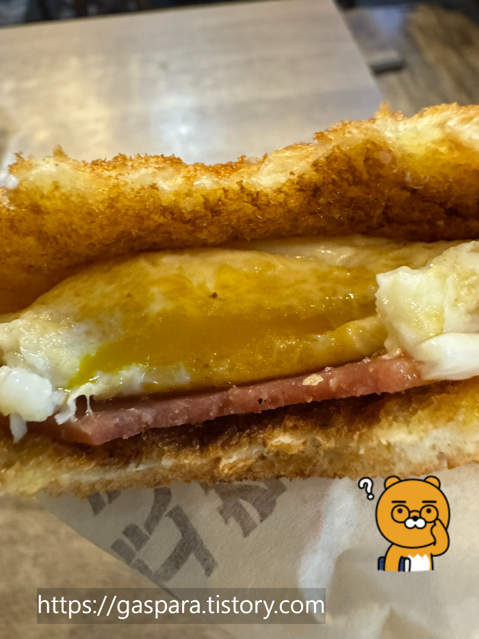 기본이 반숙인지 아무 말 없이 주문한 저는 반숙 계란을 받았습니다. 정보 없이 주문했다가 노른자가 줄줄... 옷에 묻어버린 아픈 기억이😂 토스트 자체는 담백한 햄 + 계란 조합이고 가격은 한화로 약 2천 원 대입니다. 무난한 맛이지만 특별히 찾아갈 정도는 아니지만, 밀크티는 확실히 맛있었습니다. 고소하면서도 부드럽고... 다음에 방문한다면 큰 사이즈로 주문하고 싶을 정도로 만족했습니다. 다만 밀크티의 경우 호불호 영역이라 무조건 맛있다고 추천은 못하겠습니다.