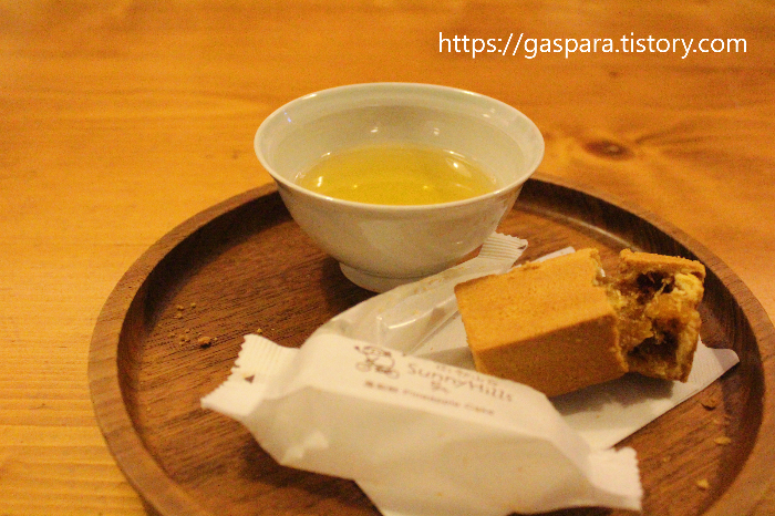 써니힐 매장의 가장 큰 매력 중 하나는 방문객 전원에게 따뜻한 음료+ 간식 시식 세트를 무료로 제공한다는 점입니다.