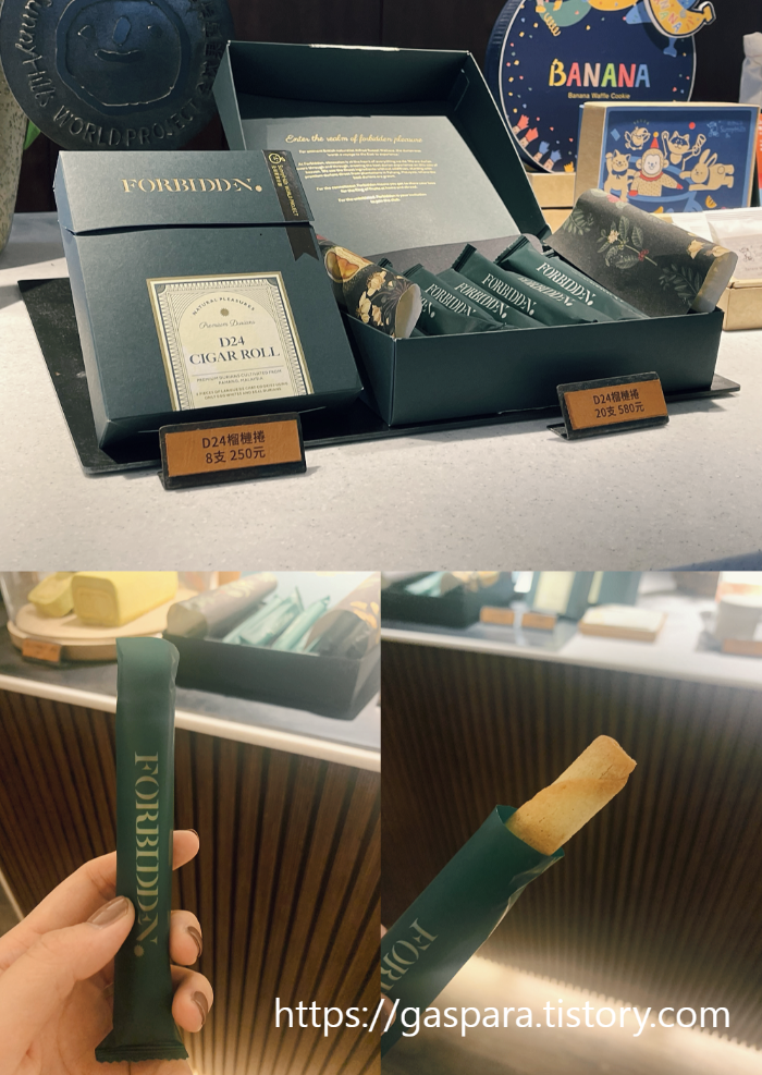 혹시 조금 더 특별한 맛을 원하시나요? 그렇다면 두리안 롤도 꼭 눈여겨보세요. 운 좋게 직원분이 시식을 권해주셔서 먹어봤는데요. 두리안 향이 과하게 세지 않아 거부감은 없고, 끝맛에 은은하게 퍼지는 두리안 풍미가 아주 독특했습니다. 8줄, 20줄 세트 구성으로 판매되고 있으니 조금 특별한 선물을 찾거나, 친구들과 "이게 뭐야~?" 하며 도전해 볼 간식으로 딱입니다. 분위기 띄우기 좋을 추억템 될지도 모릅니다.