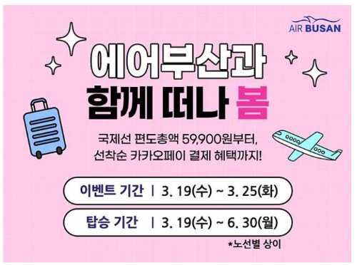 에어부산 공식 홈페이지에서는 정기적으로 얼리버드 이벤트를 진행하고 있습니다. 수화물 등은 별도로 추가 요금을 결제해야 하지만, 기본 항공권 가격이 워낙 저렴하게 나오기 때문에 많은 사람들이 몰리는 편입니다. 그만큼 경쟁이 치열해서, 놓치면 바로 품절되기도 하니 타이밍을 잘 잡는 게 중요합니다.