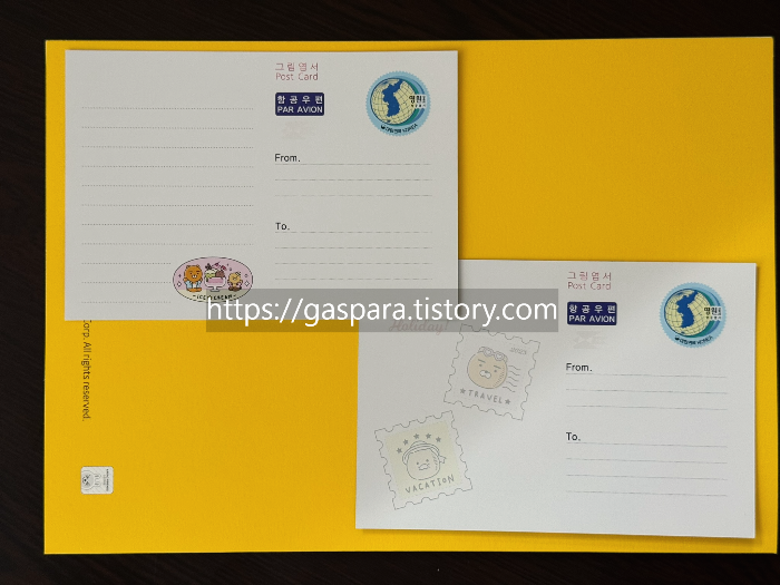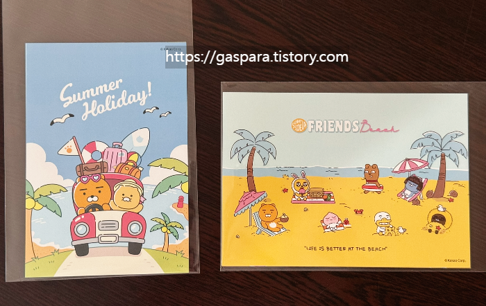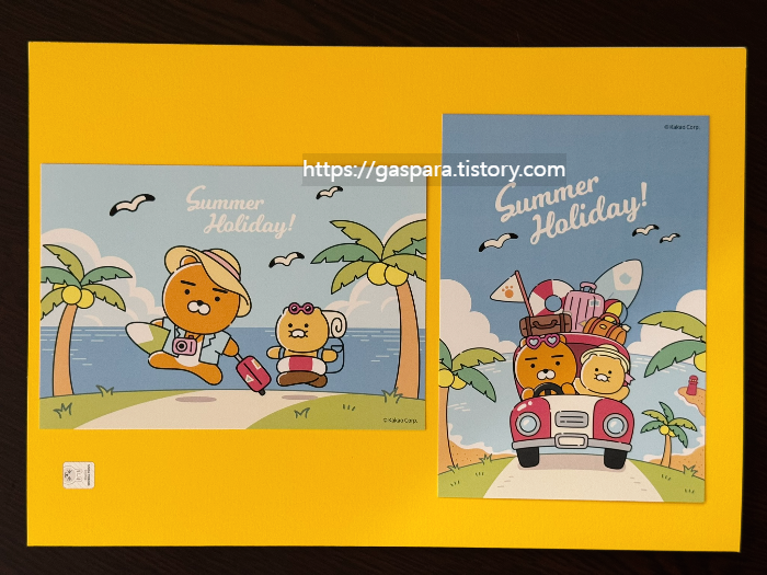 국내용 엽서 세는 총 3종으로 나만의 우표에도 사용된 서핑과 해변에서 휴가를 즐기는 카카오 프렌즈 모습으로 꾸며졌다.