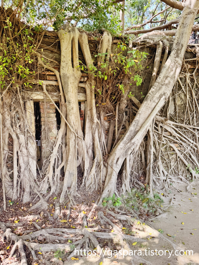 • 일제강점기 시절 소금 창고였던 이곳은 오랫동안 방치되면서 뱅골 보리수(반얀나무)가 건물을 집어 삼킴